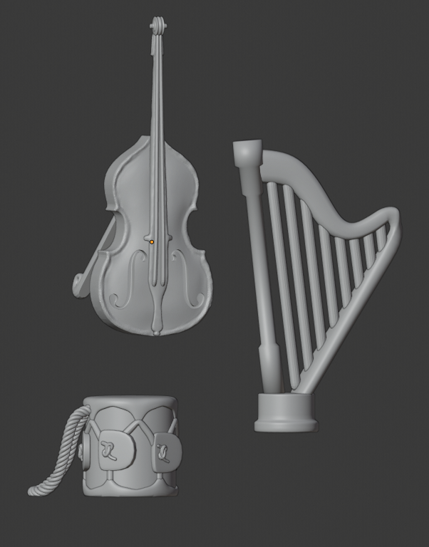 - 3 Piece Band Ensemble (harp, drum, and cello w/ stand - cello needs small supports on the bottom)