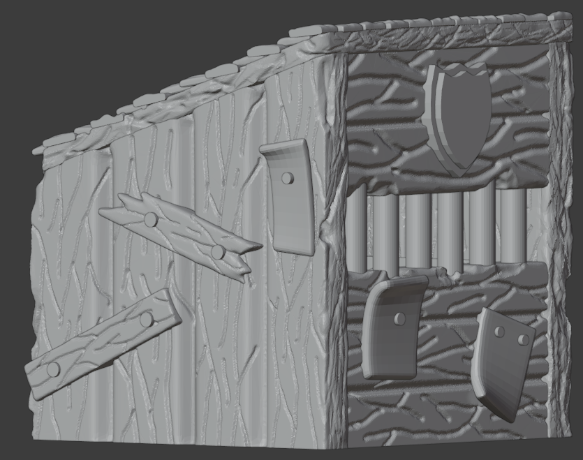 A supportless, print-in-place 3D printed guard post with working door for your TTRPG game! The default size is just over 50mm across, enough for two 25mm minis to fit inside.